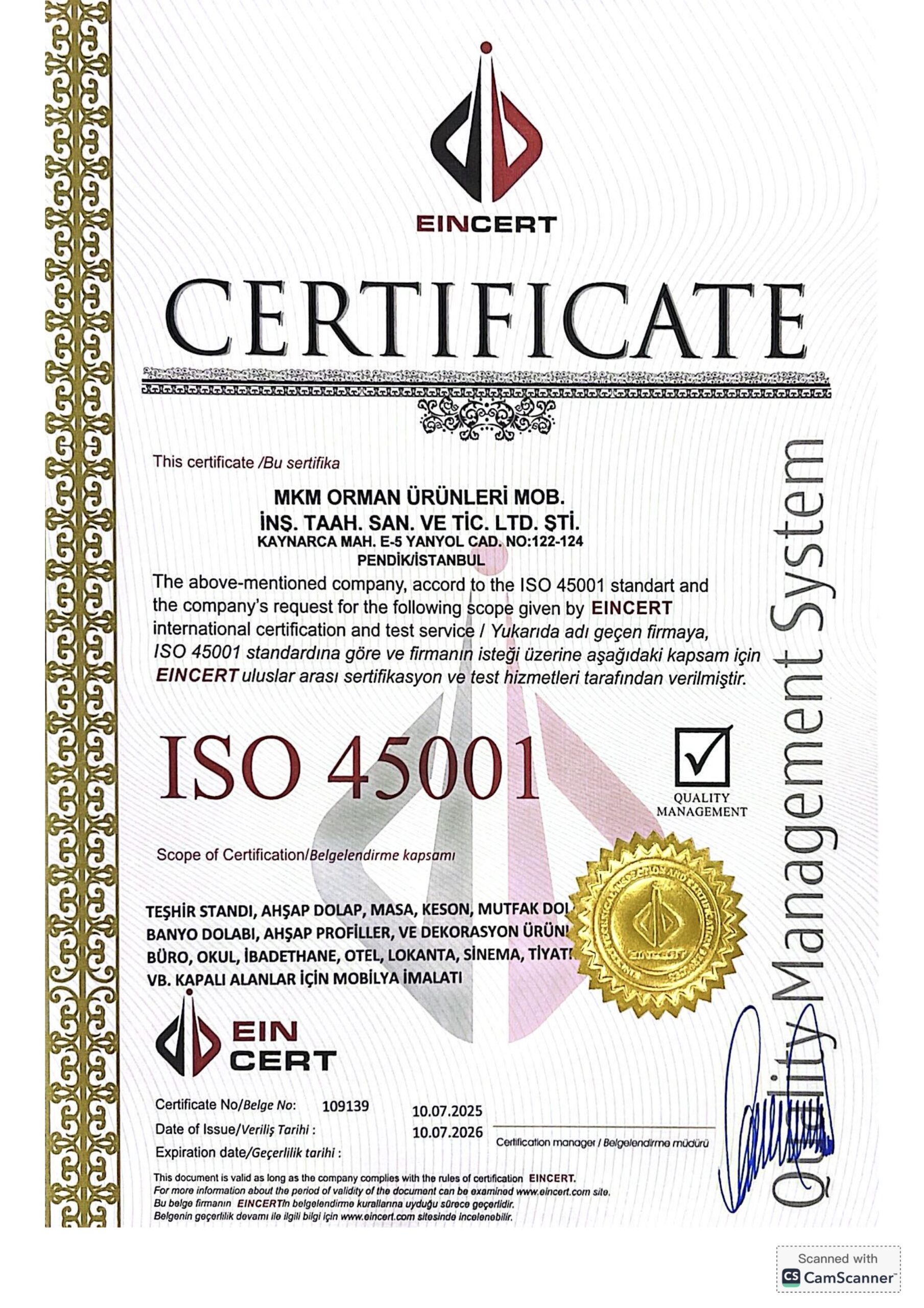 Sertifikalarımız